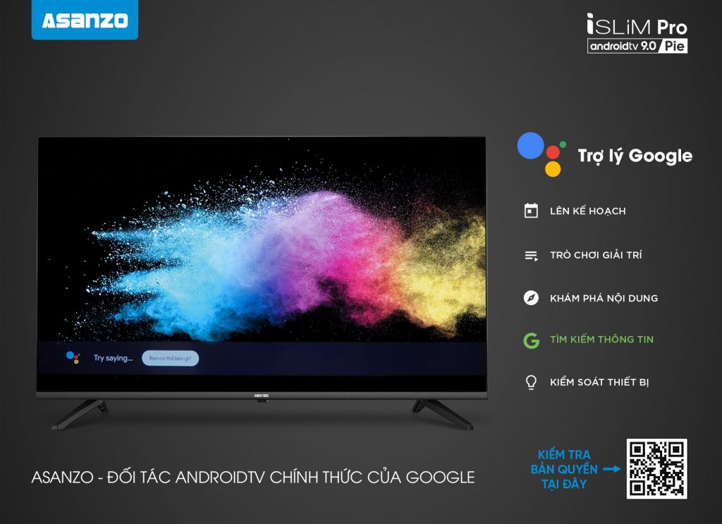 Với lợi thế là thương hiệu điện tử Việt với kim chỉ nam bình dân hóa những công nghệ hiện đại, chính sách bảo hành điện tử 2 năm và hậu mãi chu đáo, bên cạnh việc sử dụng HĐH Android TV bản quyền, Smart TV Asanzo sẽ được trang bị các tính năng độc đáo từ Google như Trợ lý ảo – Ra lệnh bằng giọng nói Tiếng Việt toàn diện, tích hợp công nghệ AI thông minh, chia sẻ màn hình Chromecast built-in, Bluetooth, Google Home, … Đồng thời mang đến thế giới giải trí hấp dẫn với hàng nghìn ứng dụng từ kho Google Play như: Netflix, Youtube, Clip TV, VTVCab ON, Prime video,…