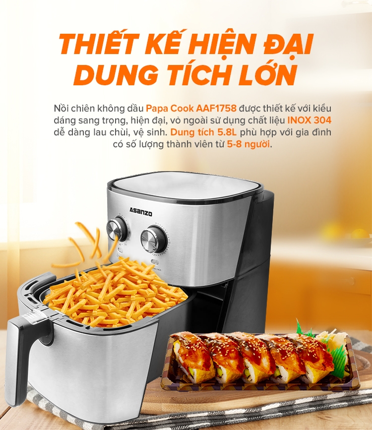 Thông số kỹ thuật sản phẩm Nồi chiên không dầu PAPA COOK - AAF1758